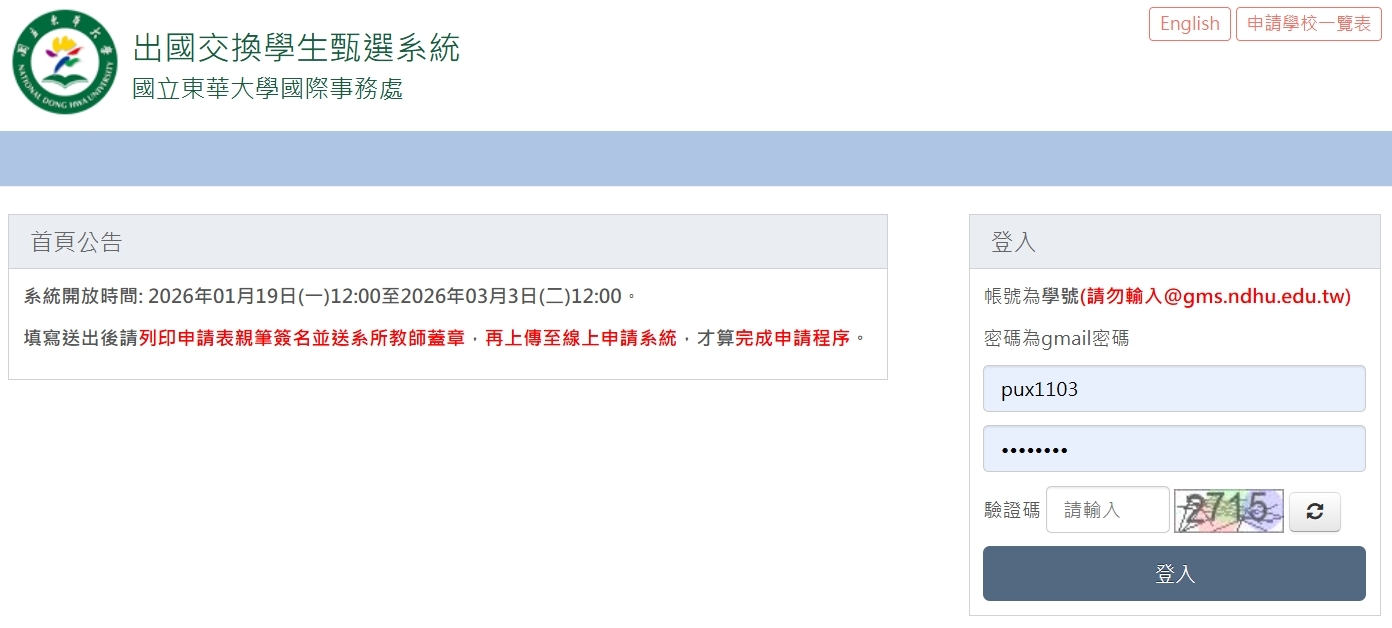 每學期甄選網址不同,提醒同學請務必由國際處網站連結進入,切勿使用搜尋,以避免進入錯誤的網頁。